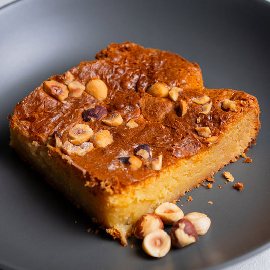 Brownie de chocolate blanco y avellanas