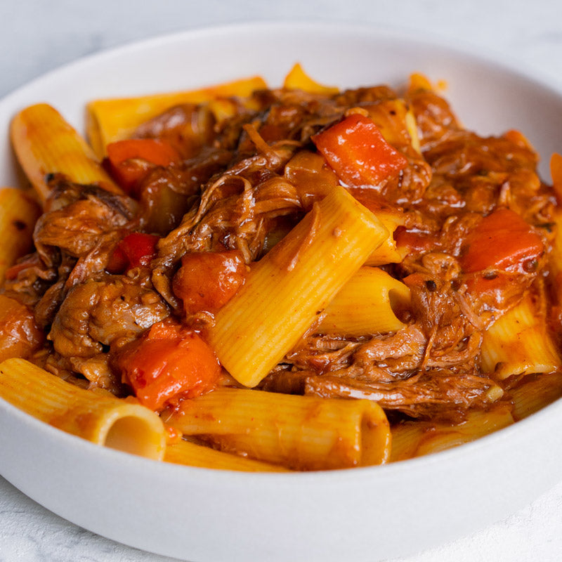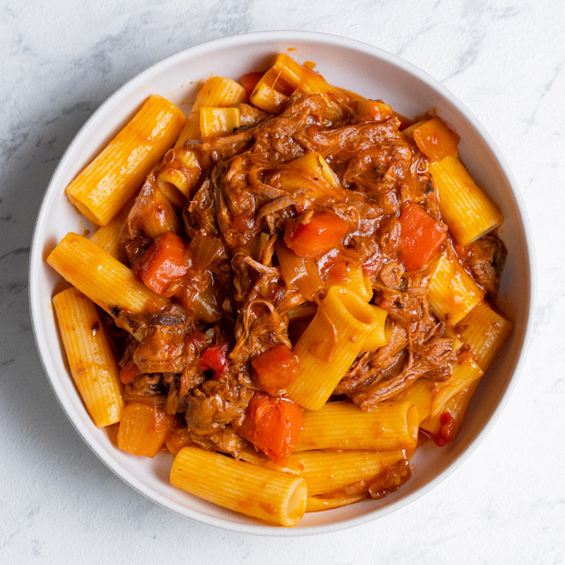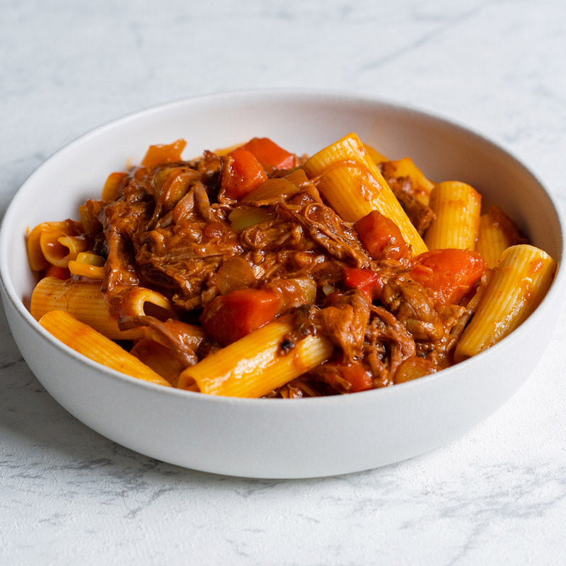Carne de ternera, pasta de trigo (GLUTEN, HUEVO), tomate frito casero, vino tinto (SULFITOS), tomate, cebolla, puerro, zanahoria, nabo, pimiento, tomate concentrado, aceite de oliva virgen, sal, albahaca, ajo, pimienta, romero, tomillo, laurel.